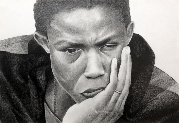 Heraldos negros, muestra el rostro de un joven detenido en un estado de profundidad emocional. Su rostro refleja desconcierto, cansancio y decepción.